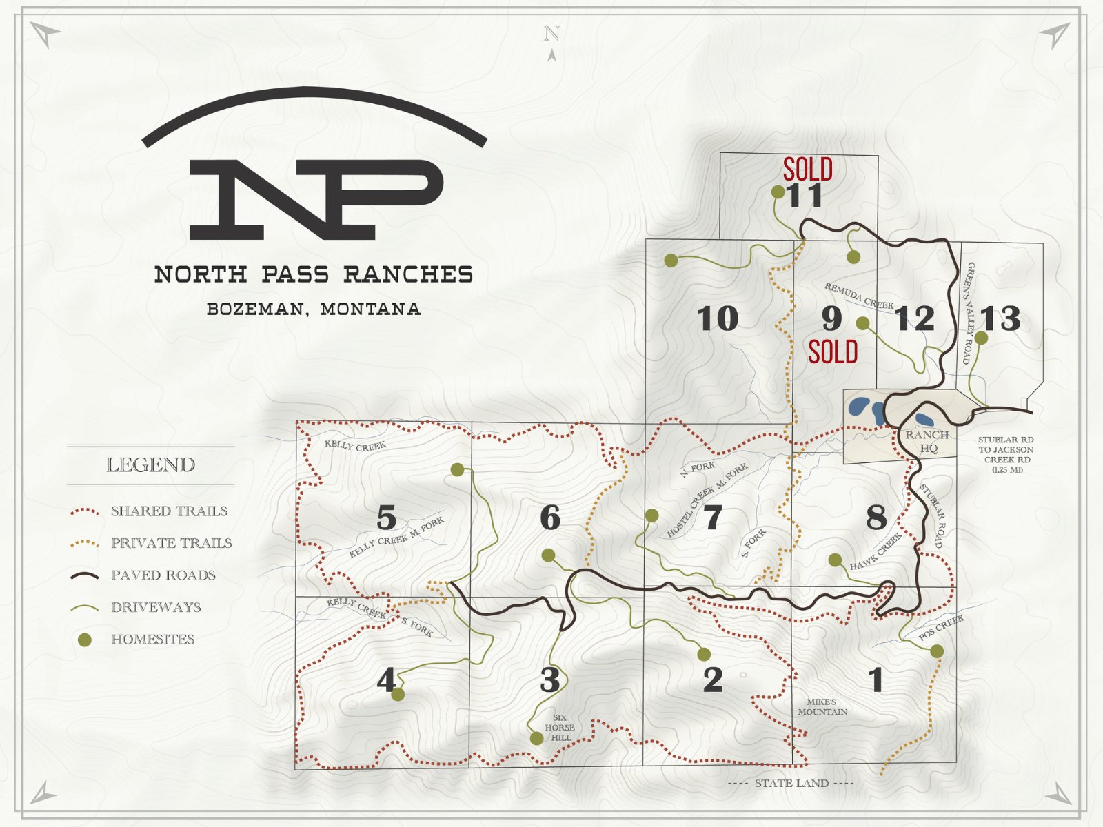 Welcome to North Pass Ranches, Bozeman's newest private, luxury ranch community. Comprised of over 1500 acres of awe-inspiring views, lush meadows, and pure mountain air, this idyllic community is situated just 15 minutes from Downtown Bozeman and 30 minutes from the Bozeman Yellowstone International Airport, yet feels like the secluded mountain oasis Montana dreams are made of. Thoughtful amenities on site include a full time ranch manager, stocked ponds for fishing and casting lessons, over 10 miles of developed horseback riding and hiking trails, plus abundant wildlife in every corridor - elk, moose, deer, and bear abound.